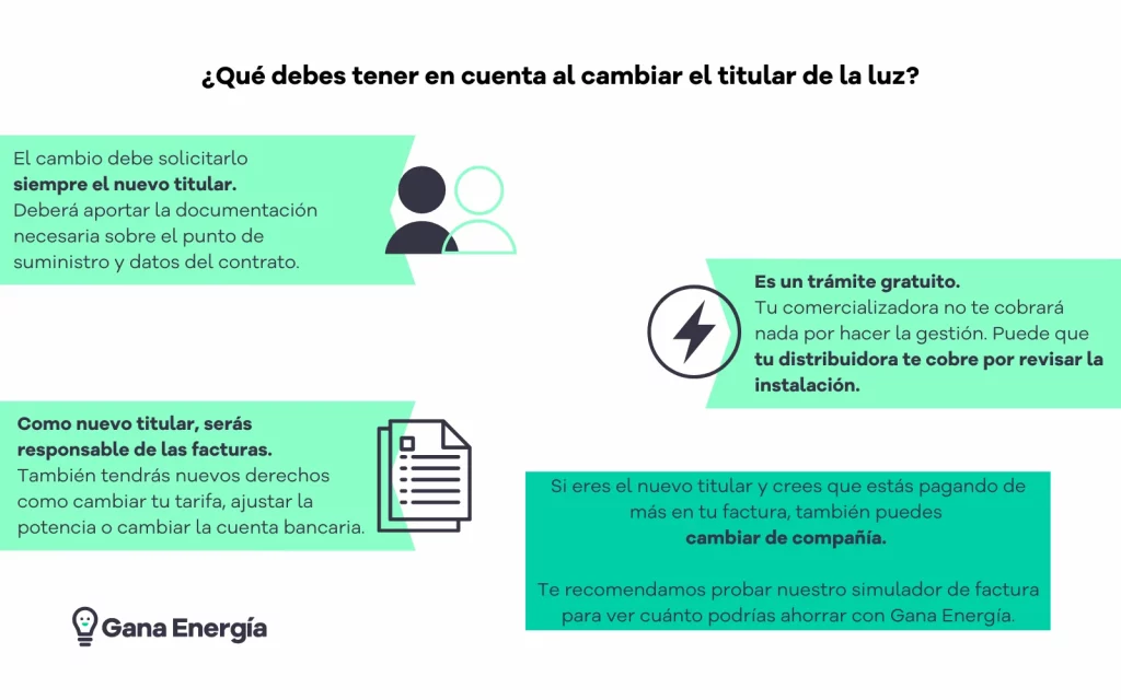 Es importante tener en cuenta que, aunque el cambio de nombre esté en proceso, la titularidad del contrato anterior no debe usarse para realizar pagos correspondientes a facturas. Lo ideal es que una vez se haya realizado la gestión, el nuevo titular asuma los derechos y obligaciones respecto al suministro eléctrico, ya que de lo contrario, se pueden generar inconvenientes legales o de facturación.