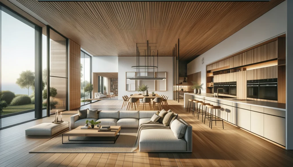 La iluminación se puede clasificar generalmente en tres tipos: iluminación general, iluminación de tareas e iluminación ambiental. Cada uno de estos tipos juega un papel fundamental en el diseño de una cocina abierta al salón, y deben ser combinados adecuadamente. La iluminación general es la que proporciona luz uniforme y es esencial para iluminar el área de manera integral. Puede ser lograda mediante el uso de plafones, downlights o luces empotradas, que dispersan la luz de manera uniforme en todo el espacio.