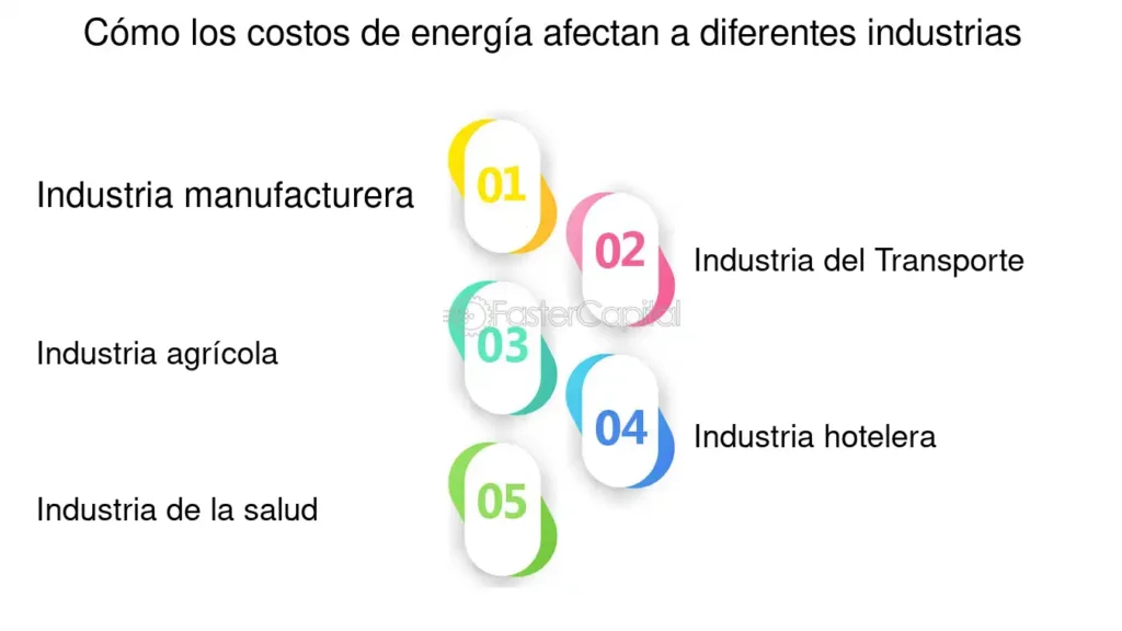 - Combustibles fósiles: Involucra el uso de carbón, petróleo y gas natural. Estos combustibles son mayormente utilizados en procesos industriales y transporte, afectando considerablemente los gastos de las empresas y consumidores.