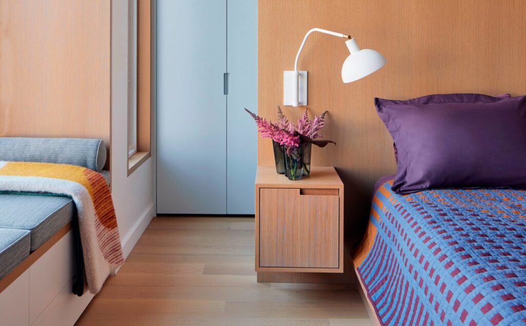 La funcionalidad y diseño de la mesita de noche colgada en el espacio moderno