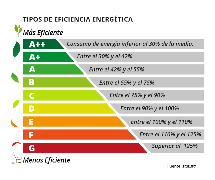 - Electrodomésticos: Refrigeradores, lavadoras, secadoras, y hornos suelen estar clasificados en función de su eficiencia energética.